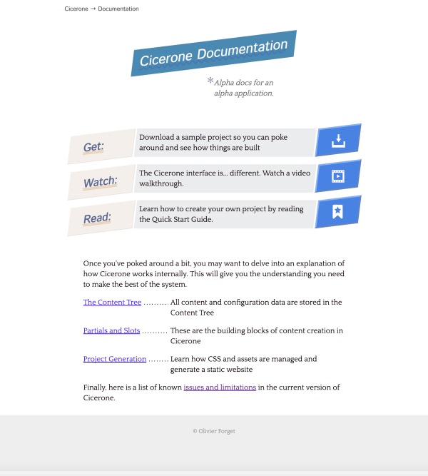 - This site (cicerone.co) was made in the alpha version of Cicerone.